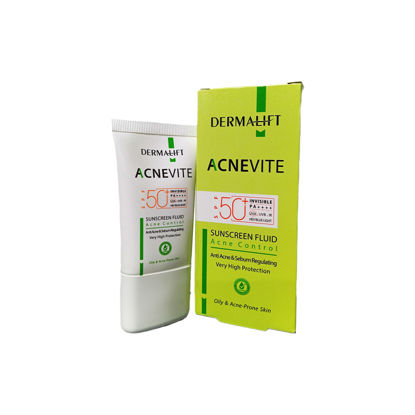 فلوئید ضد آفتاب بی رنگ درمالیفت مدل آکنویت مناسب برای پوست های چرب و جوشدار با SPF50+